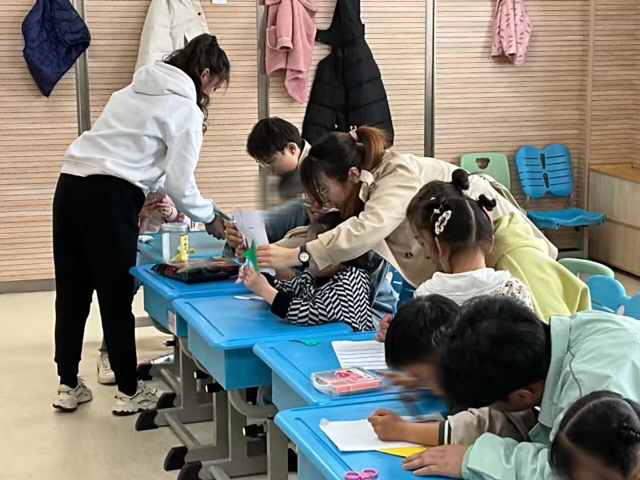 活动期间,志愿者们送去各种文具和手工材料,在特殊公司老师的指导下,与孩子们肩并肩坐在一起上课,协助老师与孩子进行沟通、陪伴,一对一帮助孩子们完成课堂任务,鼓励他们打开心扉,主动参与学习。孩子们在上课的过程中对志愿者们逐渐建立信任,由开始的羞涩变得活泼起来,现场一片欢声笑语,处处洋溢着爱与温情。活动结束后,志愿者们纷纷表示,以后将继续积极参加此类志愿服务活动,为自闭症儿童带去更多的温暖。同时呼吁更多人共同关注、支持自闭症儿童这一特殊群体,共同营造关爱、接纳、友好的社会氛围,让“星星的孩子”感受到更多的温暖,消除他们内心的芥蒂,走向更美好的未来。