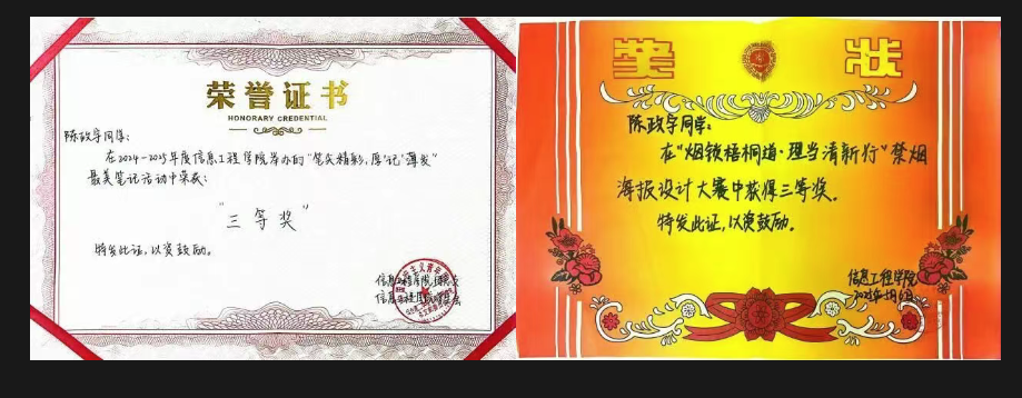 韦德官方网站为员工搭建了展示自我风采的平台,陈政宇也在这片沃土上绽放青春。自入学以来,他积极参加院校组织的各项活动。曾当选bevictor伟德官网老员工科技节、迎新晚会、读书分享会活动主持人,在韦德官方网站禁烟海报设计比赛活动中, 获得三等奖。此外,他积极报名参加短视频大赛、最美笔记等活动,并取得了较好的名次。