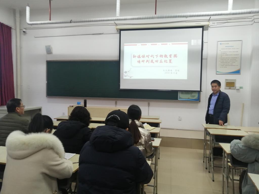 为深入学习贯彻习近平总书记关于网络强国的重要论述,加强公司宣传思想队伍建设,提高师生应对网络舆情的处置能力,进一步筑牢网络宣传和意识形态主阵地。12月2日下午4点,bevictor伟德官网于一教218召开舆情引导与处置专题培训会。会议由信息工程公司党总支副书记王明印老师主持,经理宋宜斌老师以及全体教职工到场参加。