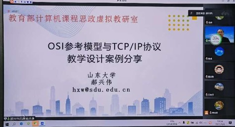 会上,评审委员会主席山东大学郝兴伟教授做了题为 《OSI参考模型与TCP/IP协议教学设计案例分享》的报告,郝教授主要针对Bloom分类法简介、案例的体例结构、具体案例分享、关于比赛四个模块进行了精彩分享。