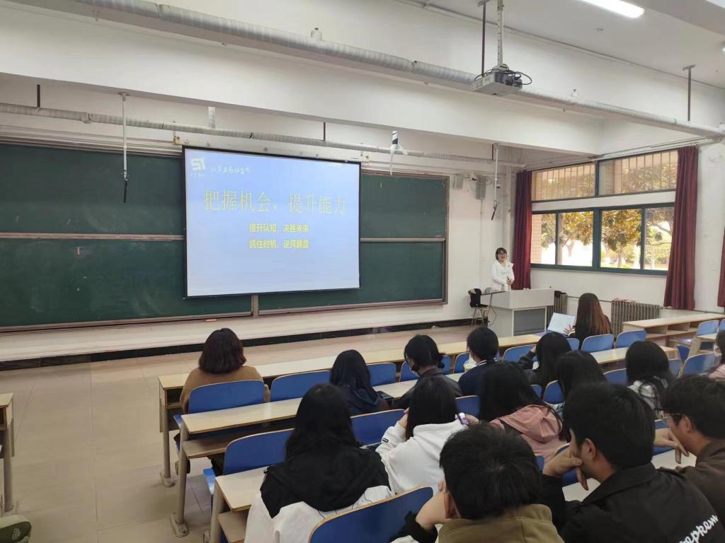 活动伊始,思途集团负责人本着毕业生就业应早着手、早启动、精准指导、稳步推进的原则,为在场同学详细讲解了春招、秋招的相关内容和简历的制作与技巧,明确指出简历要充分体现出自身的亮点。接着,他分析了公司历届毕业生毕业去向,从考研、考公、就业等情况进行了全面深入地分析,为毕业生合法签约,保护自身合法权益提供法律保障。随后,青岛百杉集团负责人为毕业生做了科学的职业规划指导。最后,各企业负责人进行现场模拟面试,让同学们身临其境,获得充分表现自我的机会。