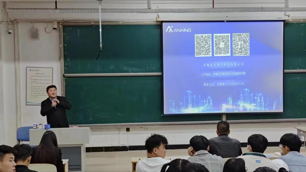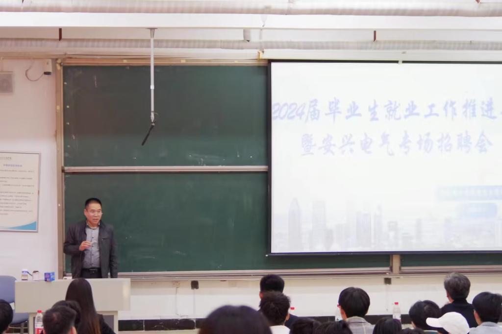 会议伊始,王书记对企业各位领导的到来表示热烈欢迎和衷心感谢,鼓励同学们要珍惜就业机会,结合自身优势,先就业再择业,脚踏实地,并希望同学们志存高远,迈好人生职业生涯的第一步。随后,安兴电气邓总通过播放宣传片,向毕业生介绍了企业的基本概况、发展前景、薪资待遇等,并围绕企业规章制度、招聘人才要求、福利待遇、晋升渠道等同学们关心的问题进行了详尽的解答,引领毕业生深层次、多方面、宽选择的制定就业计划。最后,毕业生积极地与公司领导面对面交流,并耐心的为毕业生答疑解惑,并针对应聘面试做了进一步的指导,让毕业生深入了解面试流程,现场气氛热烈。