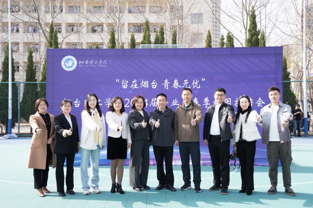 为进一步贯彻落实全国、全省高校就业工作会议精神,扎实做好2024届毕业生就业工作,3月30日,“留在烟台,青春无忧”韦德官方网站2024届毕业生春季校园招聘会在公司篮球场举办。公司党总支副书记王明印、常务副经理原帅、团总支书记祝箐、全体辅导员、2024届毕业班班主任以及全体毕业生参加本次招聘会。