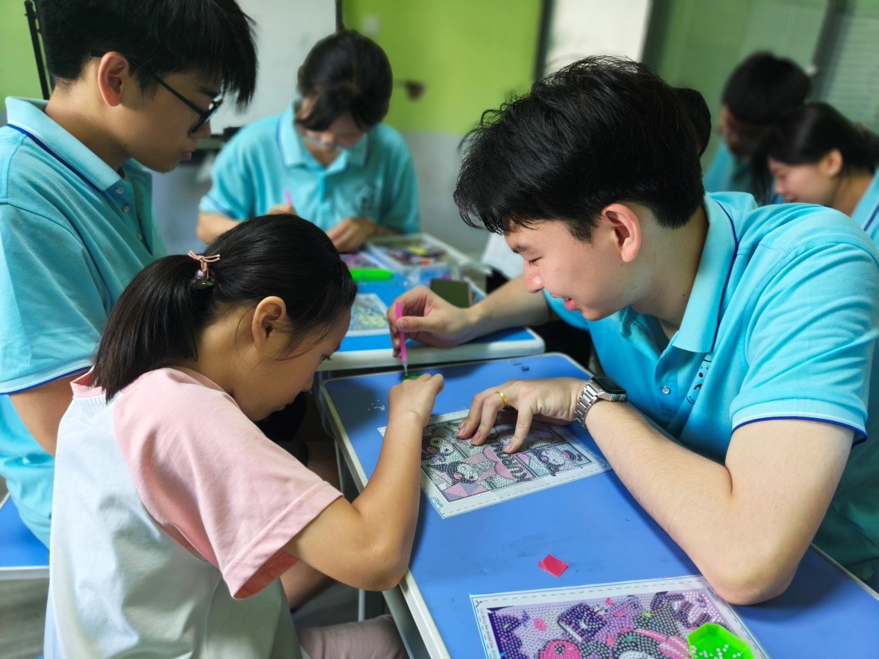 除了特色课程,团队成员还参与到孩子们的日常生活中,包括喂食、清洁、游戏以及午休。在这些温馨的时刻里,团队成员倾听孩子们的心声,给予他们温暖的拥抱与鼓励的话语,成为孩子们心中的“大朋友”。最后一天,队员们与孩子们共同参与的漆扇制作活动,成为了加深彼此理解与情感联结的亮点,每一把漆扇都承载着孩子们的创意和队员们的心意,它们不仅是传统工艺的体现,更是双方友谊的见证。活动的尾声,队员们与孩子们交换了亲手制作的漆扇和其他礼物,这一温馨的举动让这次经历更加难忘。