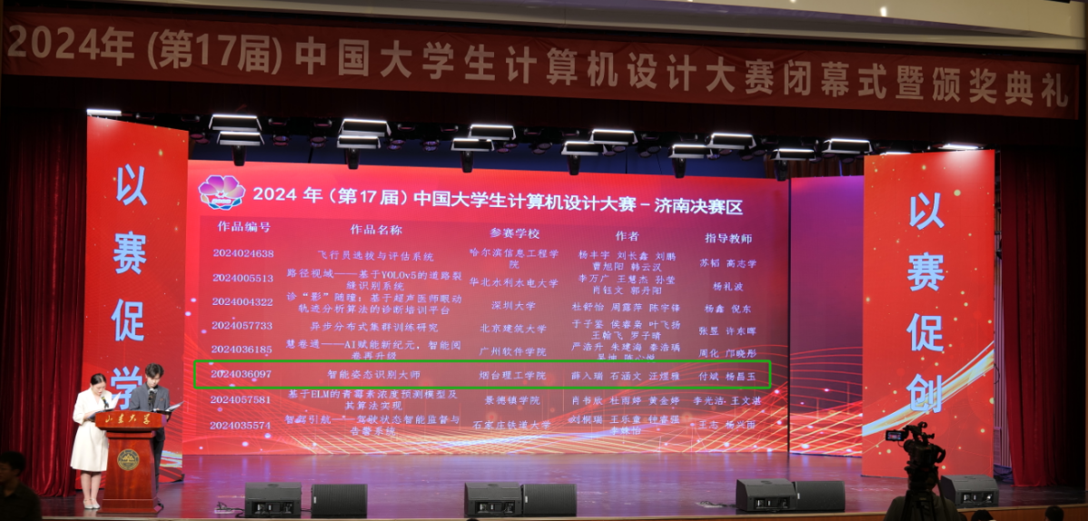 国赛由来自全国422所高校的近2700名参赛队员带来的647件作品进入决赛环节。参赛团队包括哈尔滨工业大学、上海交通大学、电子科技大学、中国农业大学、西北工业大学、暨南大学、华南理工大学、上海大学、南京邮电大学和深圳大学等高校。“智能姿态识别大师”作品凭借其过硬质量取得了国赛三等奖的成绩。