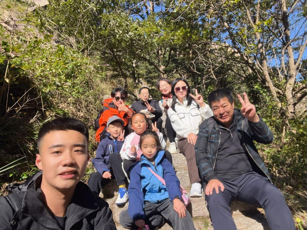 活动伊始,全体教职工乘坐大巴来到海阳招虎山,简单整备过后,团建活动正式开始。以“自然风光,琉璃世界”著称的招虎山,湖面水平如镜,清澈无瑕,沿路奇石林立,山情野趣尽在其中。教职工们拾级而上,欣赏着层峦重叠的招虎山美景。登山过程中,全体教职工热情高涨,兴致勃勃,大家或健步快走谈笑风生,或稳步途行合影留念,或你追我赶向上攀登。欢快的步伐是沿途的一道靓丽风景线,大家一路上相互帮扶,战胜了步步相连的阶梯,战胜了瞬间身体的疲劳,最终全体成员顺利登顶,从高处俯瞰群山,尽情享受着登山的乐趣。