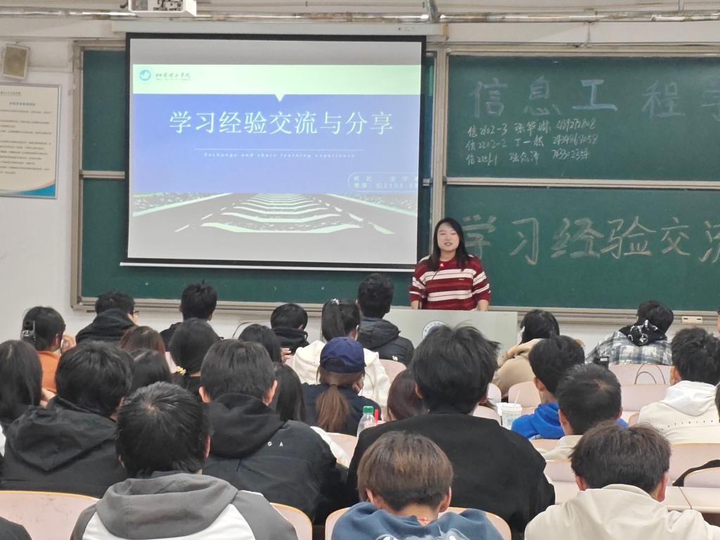 会议伊始,国家奖学金获得者张华琳从基础课和专业课的学习以及自身学习态度这三个方面结合自身成长经历,从多个方面提出建议:一是合理规划时间、设定可行目标;二是勇于尝试锻炼、提升专业能力;三是了解自身特点、规划发展路径。国家励志奖学金获得者刘笑同学分享了自己在各类学科竞赛中的经验和技巧。她鼓励同学们积极参与各类竞赛,通过实践来检验和巩固所学知识,激发创新思维,培养团队合作精神。最后,祥隆奖学金获得者王彦羽,员工干部标兵获得者陈鲁川分别向大家介绍了综合测评的考核方式和内容,强调了在追求专业成绩的同时,也要注重个人品德修养和全面发展的必要性。他们建议新生们在学习中多观察、多思考,勇于实践,不断提升自己的综合素质。
