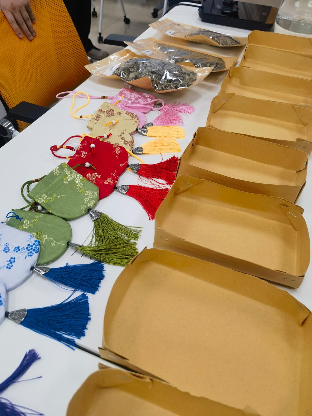 活动伊始,工会主席张爱娜老师进行现场指导,创意签到环节拉开活动序幕,老师们签到后领取专属咨询卡,正式开启了这场养生之旅。活动现场设置了多个养生互动区域。健康咨询区,专业医师一对一精准答疑并提供免费咨询,让老师们深刻感受到中医的魅力与对健康的呵护。按摩艾灸区,专业医师为教师进行肩颈推拿、脊椎推拿和部位艾灸,带来舒适体验。养生茶歇区,四神汤、气血茶等由中药师精心调配的茶饮,为老师们带来温暖与滋养。此外,还有手工制作中药香囊等趣味活动,让老师们感受到传统中医文化的魅力,为“女神节”增添了别样的风采。活动尾声,老师们领取健康伴手礼,手持自制作品合影留念,为践行健康生活注入新动力。