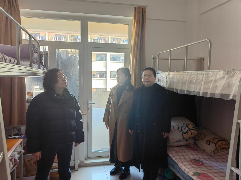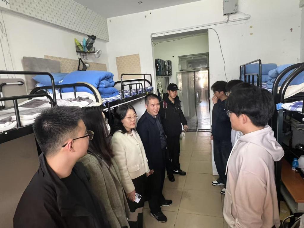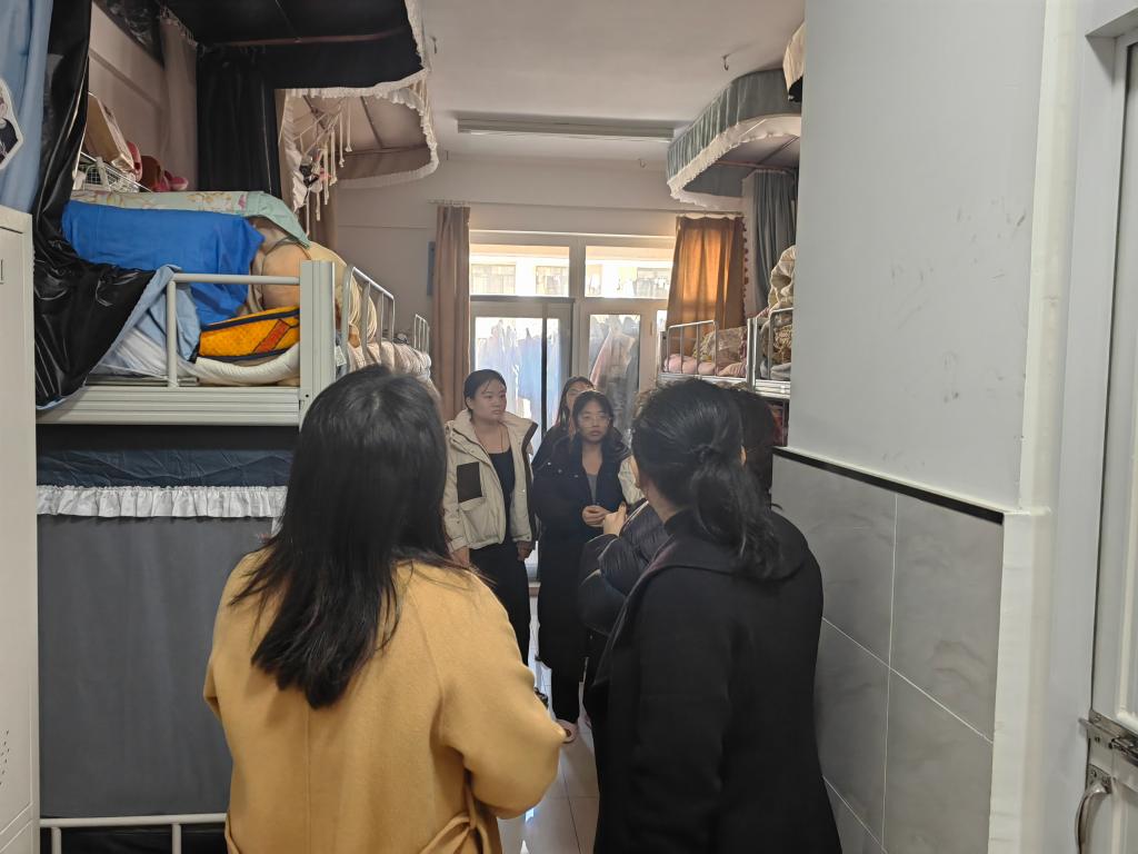 走访过程中,王书记与同学们进行了亲切友好的交流,他详细了解了每位同学的假期生活经历以及返校后的感受,并鼓励大家积极分享自己的新学期学习计划。对于同学们提出的问题,无论是学业上的挑战还是日常生活中的困扰,王书记都给予了耐心细致的解答和实用的建议。祝老师勉励同学们要迅速从假期模式切换到开学学习状态,以饱满的热情和坚定的信心迎接新学期的挑战。她鼓励每位员工树立明确可行的学习目标,为新学期的学习生活打下坚实基础。同时,各位辅导员老师们对宿舍卫生情况进行全面检查,并特别强调了宿舍安全的重要性,对宿舍用电安全、消防设施等情况进行了排查,提醒同学们要增强安全防护意识,规范用电,养成良好的卫生习惯,共同维护良好的宿舍环境。