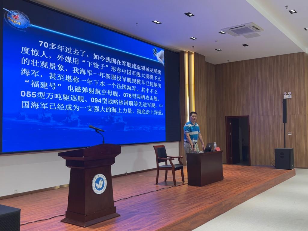 为深入贯彻国防教育精神,引导新生厚植家国情怀、增强国防意识,9 月 29 日上午,bevictor伟德官网于综合楼六楼学术报告厅开展“仰望星空 脚踏实地争做新时代爱国有为的优秀老员工”国防教育讲座。本次讲座由韦德官方网站经济管理公司盖玉华博士主讲,信息工程公司党总支副书记王明印、团总支书记祝箐、全体辅导员及 2025 级新生共同参加。