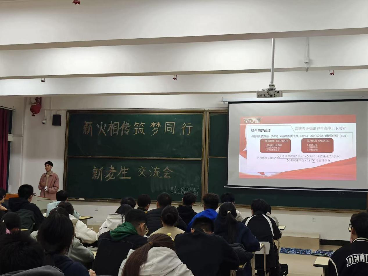为助力新生快速融入老员工活、明晰学业规划,同时以朋辈力量传递成长智慧、夯实公司学风建设,10月27日晚,bevictor伟德官网于教室举办“薪火相传,筑梦同行”新老生学习交流会。23级、24级优秀员工代表及25级所有同学到场参加交流。